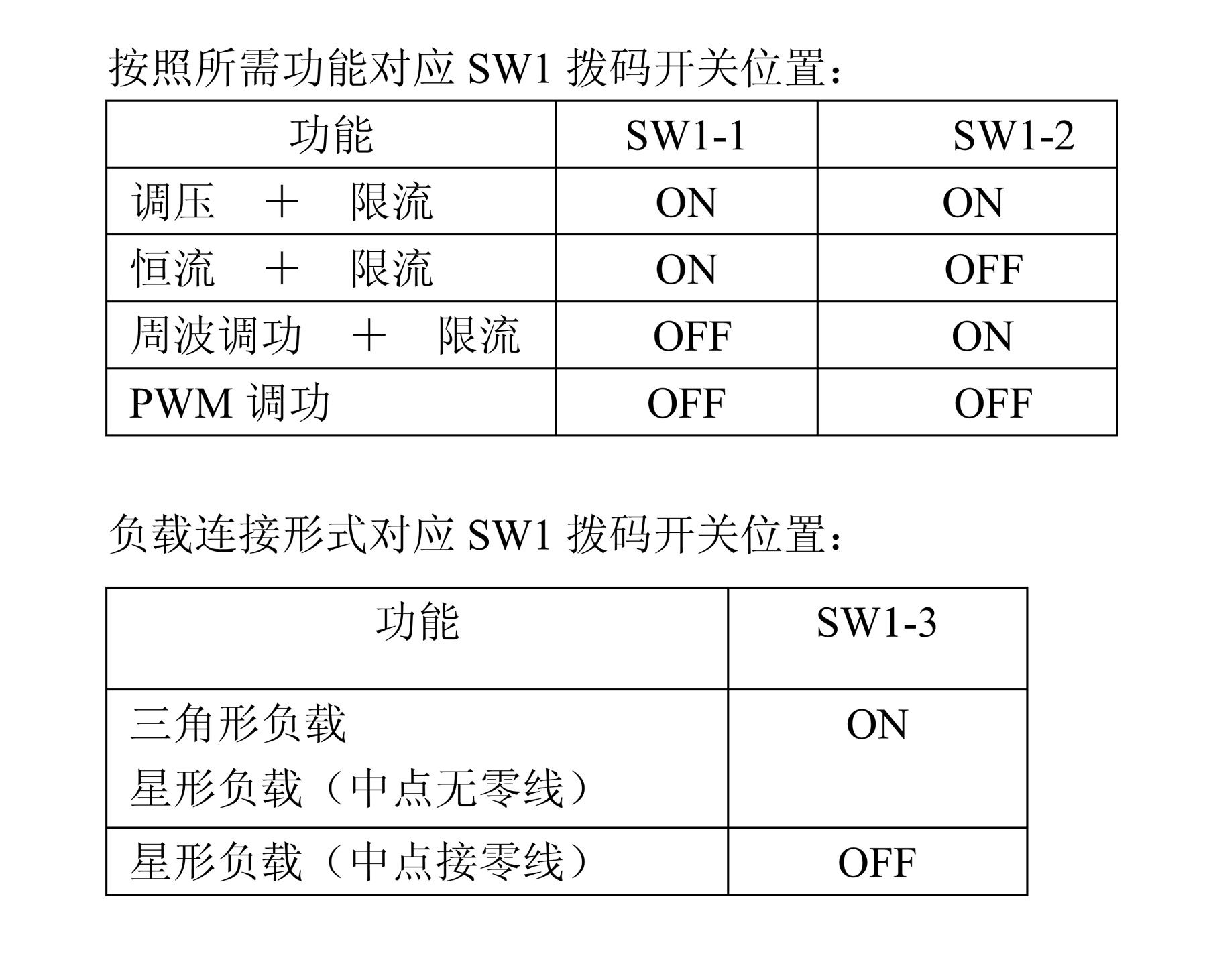 4. SW1-1=OFF SW1-2=OFF是,PWM 調(diào)功(無限流功能)